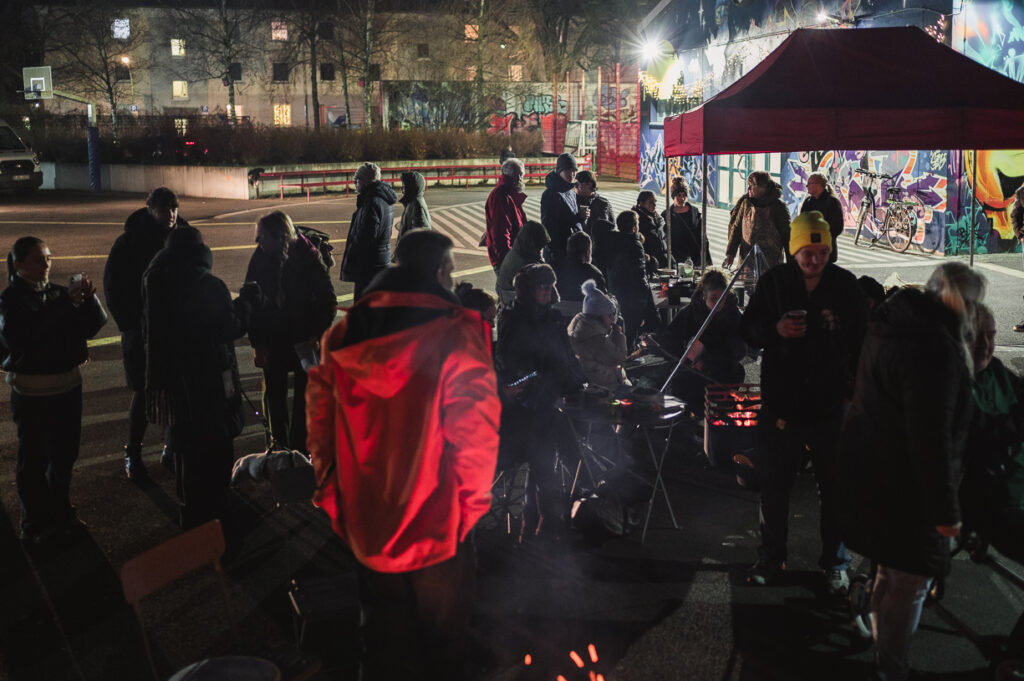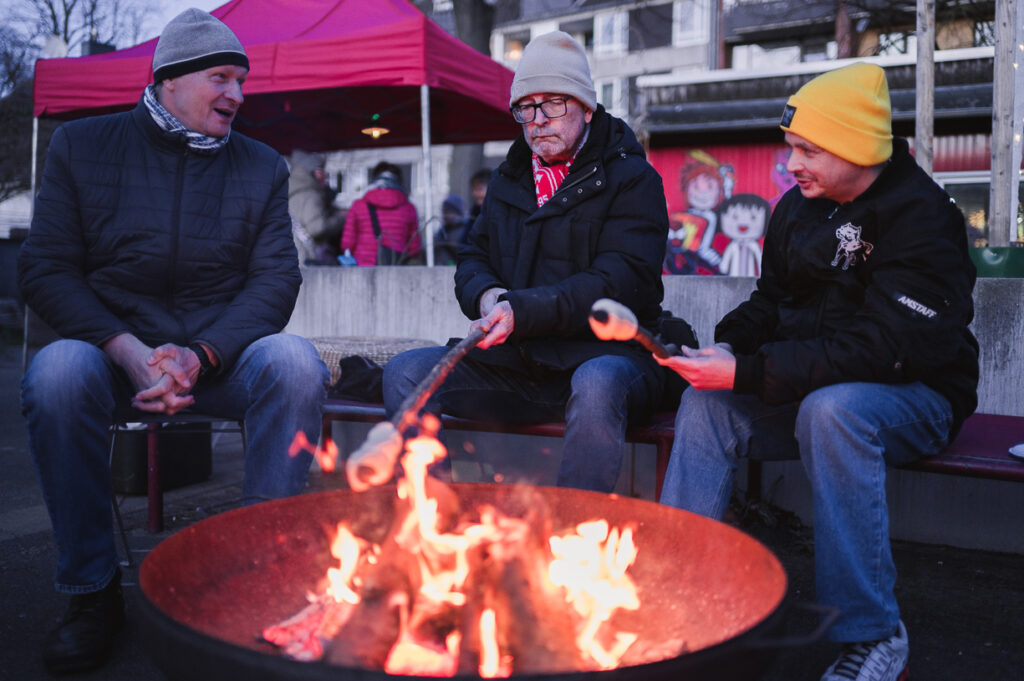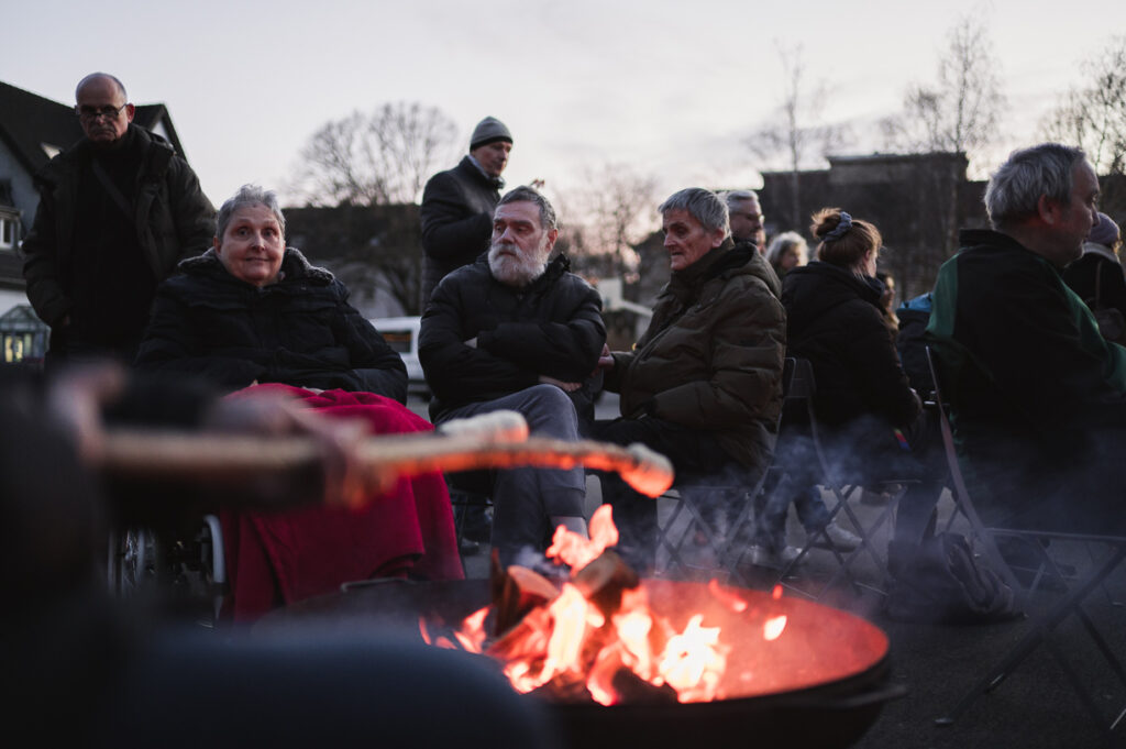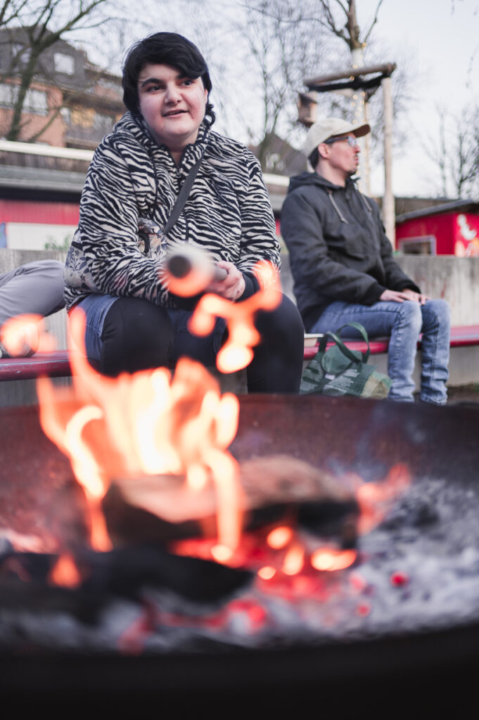 Das Knistern ist zu hören und auch die Feuer sind zu sehen, die für die Pop-up Weihnachtsfeier vom inklusiven Nachbarschaftsgarten Gemeinsam wachsen! der In der Gemeinde leben gGmbH (kurz: IGL) angezündet wurden.
