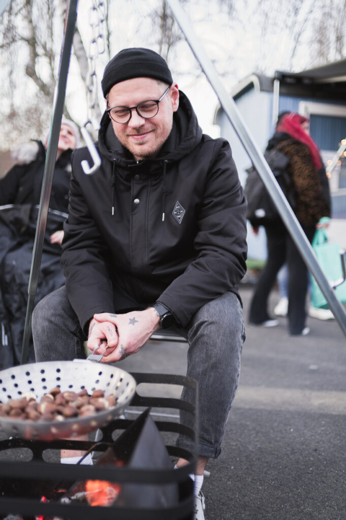 Draußen auf dem Gelände der Freizeiteinrichtung Icklack stehen die Feuerschalen für das Stockbrot, die Maronen und zum Warmhalten für die Gäste bereit und die zahlreichen Besucher suchen deren Nähe auf. Überall gibt es Stühle und Bänke zum Sitzen, Quatschen und Überlegen, worauf jeder Appetit hat. Das Tageslicht verschwindet langsam an diesem angenehm kühlen Nachmittag und verbreitet so mit den Mandarinen, den selbst gebackene Plätzchen und sonstigen weihnachtlichen Accessoires gemütliche winterliche und festliche Stimmung.